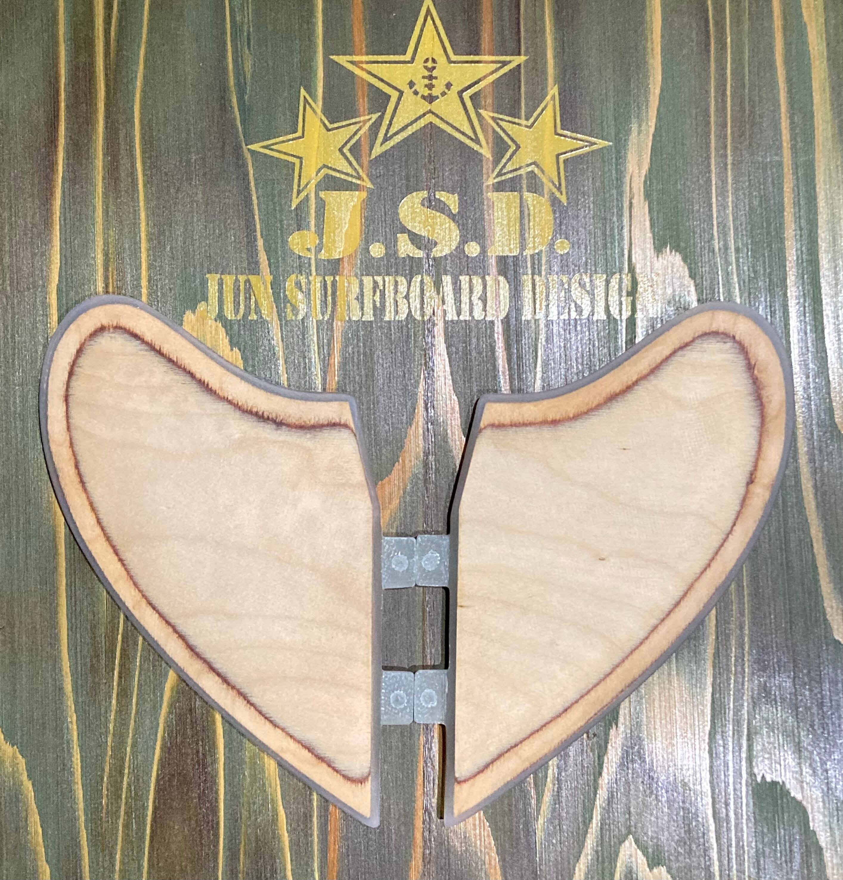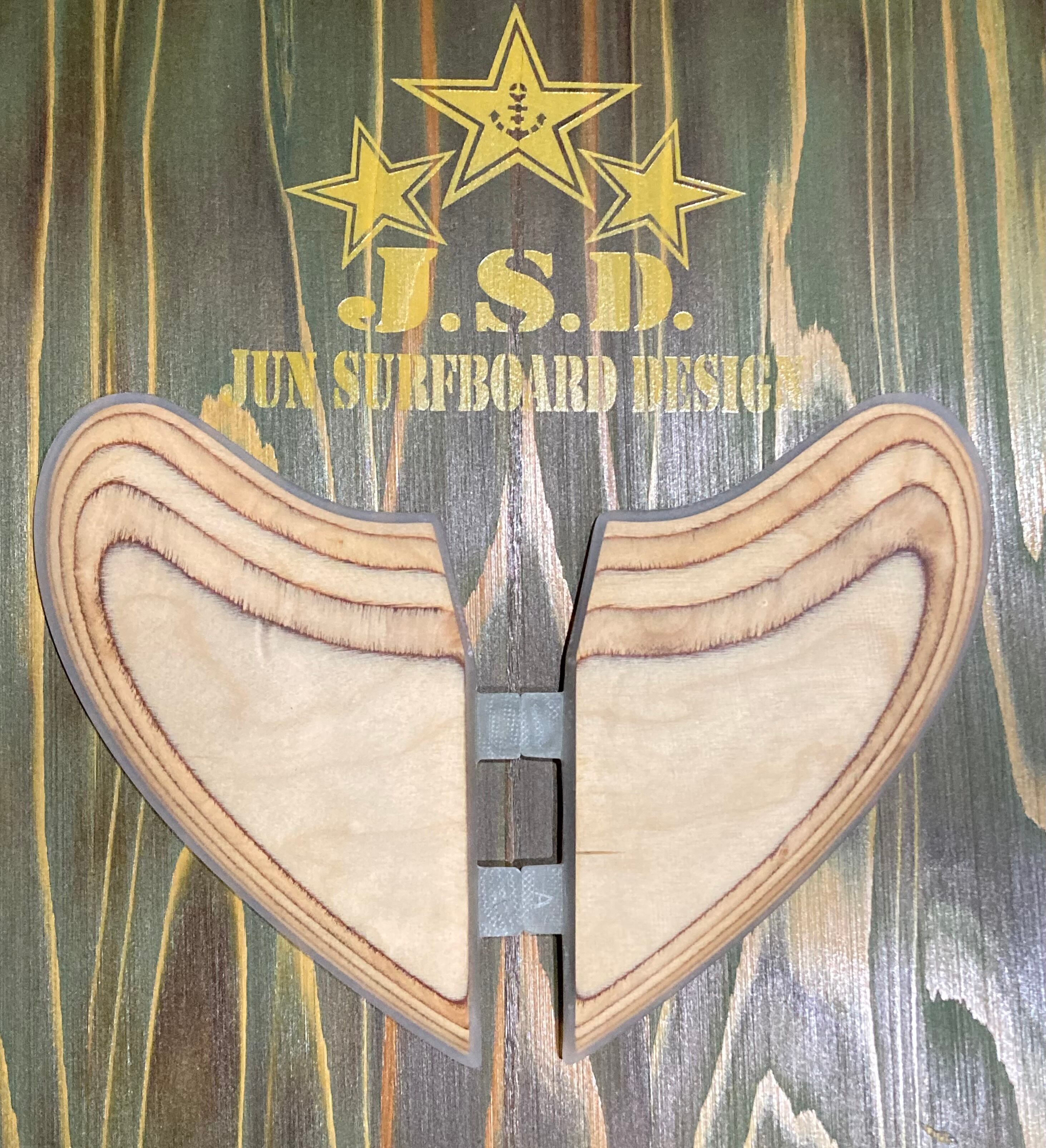 JSDオリジナルツインフィンAタイプ、ミニシモンズ・レトロフィッシュ用ウッドキールフィンです。
